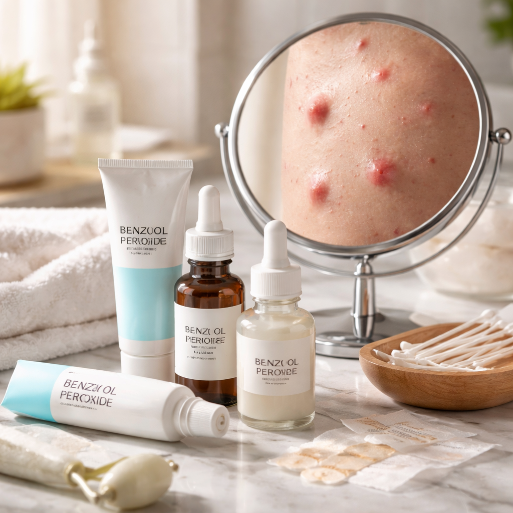 • Benzoyl peroxide — kills acne-causing bacteria directly and reduces inflammation. Available over the counter in concentrations from 2.5% to 10%. Start low to minimize dryness.